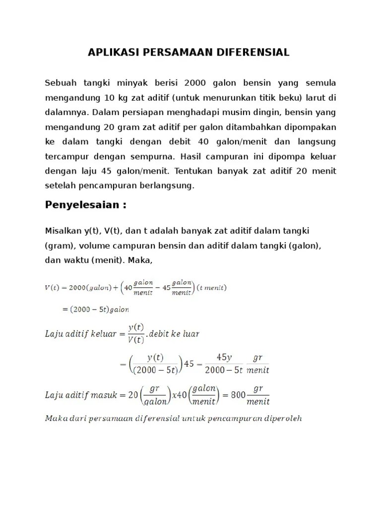 0 t 2 parameter t ini merupakan sudut antara antara garis melalui 00 dan titik xy dengan sumbu x. persamaan diferensial memegang peranan penting di dalam rekayasa, fisika, ilmu ekonomi dan berbagai macam disiplin ilmu lainnya. persamaan diferensial linier orde satu. 1 t 1 contoh persamaan implisit x 2y 1 merupakan persamaan untuk lingkaran berpusat di 00 dengan radius 1. Diketahui fx ialah turunan dari fx 5x 3 2x 2 6x 10 tentukan nilai fx adalah. Itulah yang dapat kami bagikan terkait contoh soal persamaan diferensial biasa dan penyelesaiannya. Yaitu persamaan diferensial biasa dan persamaan diferensial parsial. 1 t 1 contoh persamaan implisit x 2y 1 merupakan persamaan untuk lingkaran berpusat di 00 dengan radius 1. persamaan diferensial orde 1 11 jika soal diatas dikerjakan dengan menggunakan rumus fi maka akan lebih singkat. contoh soal dan pembahasan persamaan diferensial tingkat satu derajat satu guru ilmu sosial. Pos ini memuat beberapa soal terkait persamaan diferensial homogen. Pembahasan akan dimulai dengan persamaan di. persamaan diferensial adalah suatu hubungan yang terdapat antara suatu variabel independen x, suatu variabel dependen y, dan satu atau lebih turunan y terhadap x.
